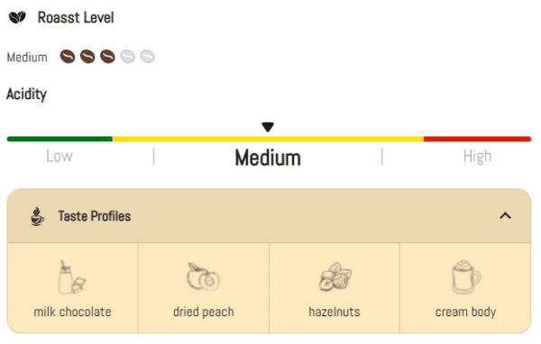 - Milk Chocolate, Dried Peach, Hazelnuts, Cream, Body