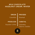 The cup is well-rounded, with balanced Hazelnut and chocolate flavor that pairs beautifully with milk or stands out as a fine espresso.